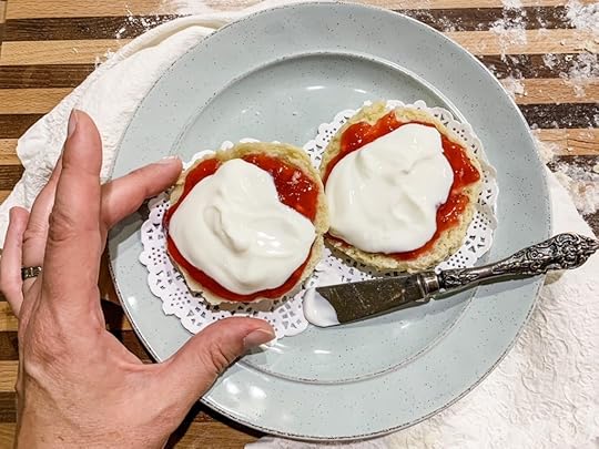 To prepare them once they’ve baked and cooled, slice them open, burger bun style, and slather on a layer of jam. Put them back together or serve separately, open faced. For school, you can swap out the clotted cream for vanilla Greek yogurt to make them more kid friendly (and more healthy). I recommend sending the yogurt in a separate container with instructions to add it at the time of consumption, to avoid a royal mess.
