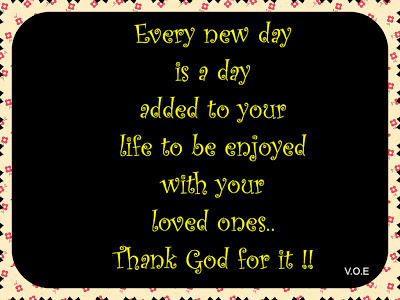 A new day should never be addressed as JUST ANOTHER day. Many long for one more day to make things right,