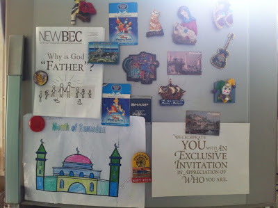 Recess was shortened slightly, which meant the non muslims would have to eat faster and get back to class sooner than usual. She was not upset with the arrangement, but what impressed me most was what she did last night. While arranging the books on the study table, she saw CJ's colouring and she looked at it for a while and turned to ask me if she could place it on our fridge.