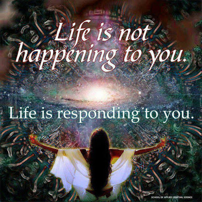 I believe the words in the picture above just says it all. Life is not happening to you. it's responding to you.Study its responses and embrace it for acceptance of a job well done or a sign for personal change.How you act to it is how it will react to you.