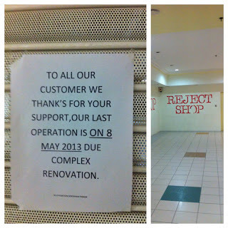 I was at Seremban Parade last Sunday and as I took the escalator down from the parking lot, I was surprised to see that 'Reject Shop' was closed at 11.30am and I made my way to reading why, only to choke on what I had read.