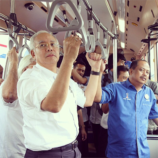 pic from friends of BN-Barisan National (FB Page)Hilarious I say!How on earth can anyone in the right mind say this man is actually trying to experience what we Malaysians are experiencing? Does he think by taking the public transport (of which we do appreciate but know for a fact we could have it better than what is given to us - after all, we did once have the tallest building in the world which stands proudly erected in the middle the actual mess of a city) any one of us would be swayed into believing he cares or any of his cronies for that matter?