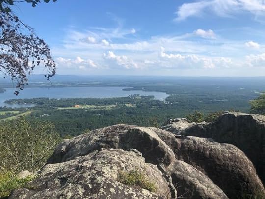 I sleep without the rain fly. A cool breeze blows through the tent all night. I wake in the morning to refreshing cool and a canopy of tree branches. I make oatmeal and coffee and scramble up the back of a cliff to look out over the lake.