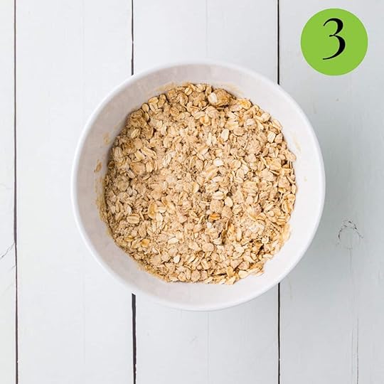 4. Place oats, flour, brown sugar, honey, butter and baking powder into a medium sized bowl and mix well.
