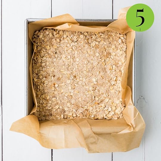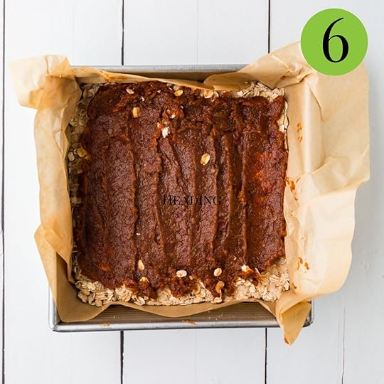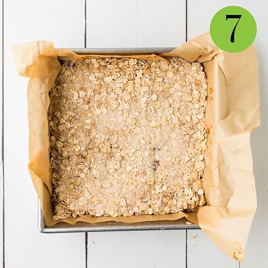 8. Add remaining oat mixture on top of the date filling and gently press it down.