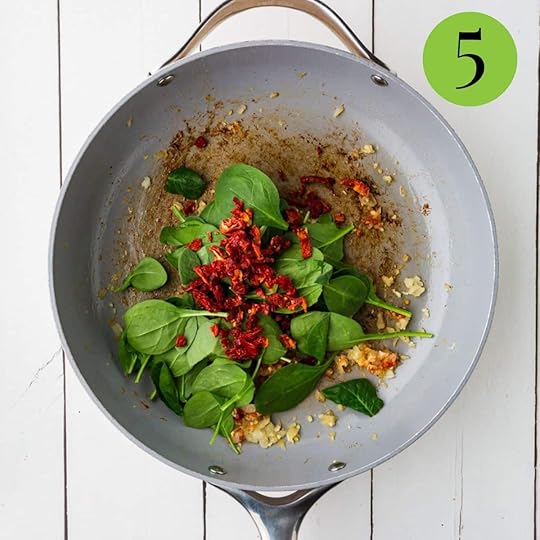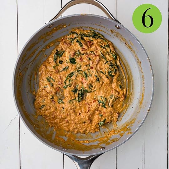 5. Stir in the tomato paste and cook for another 2-3 minutes. Add the chopped sundried tomatoes and the baby spinach to the skillet. Cook until the spinach wilts, about 4-5 minutes.