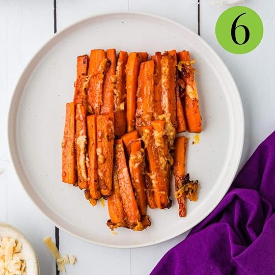 7. Remove from oven and flip over immediately to let the parmesan melt onto the carrots. Enjoy.