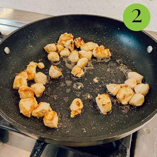 2. Dice the chicken into 1 in or smaller pieces. Dredge the chicken pieces in flour to coat them.