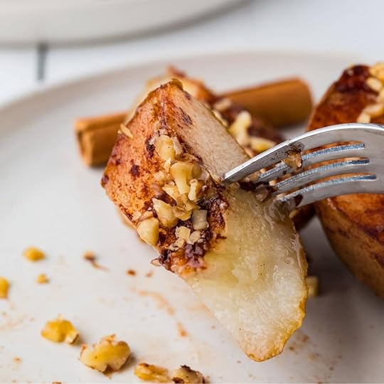 Preheat the air fryer to 350'F - if you don't have the preheat setting, allow it to run empty for about 3 minutes at 350'FFollow the other directions up to putting the pears in the ovenLightly spray or brush the air fryer basket with non stick spray (or line with perforated parchment paper designed for air fryers)Place the pears cut side down in the basket, and air fry for 8-10 minutes.Flip the pears, add the walnuts and continue air frying for 5-7 more minutes. Watch that the walnuts don't burnCheck for doneness early, as air fryers cook faster than traditional ovens.Clean-Up Tip: If youâre worried about drips or sticky residue, place a small heat-proof dish or piece of parchment paper under the pears to catch any syrup.Substitutions for Baked PearsIf you need to make adjustments to better suit your dietary needs or ingredient availability, here are three kidney-friendly substitutions: