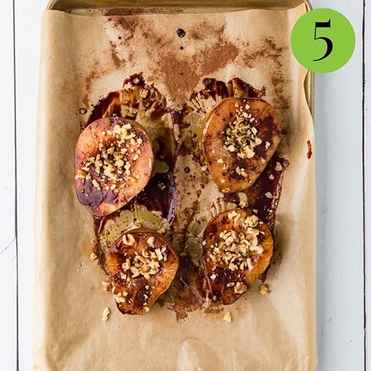 5. Mix the maple syrup, lemon juice and vanilla and drizzle over the pears evenly.