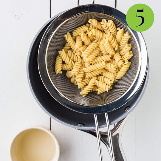 6. Cook the pasta to al dente according to package directions. Drain and reserve ½ cup pasta water.