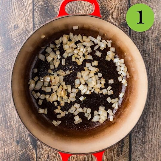 2. Add the chopped onion to the drippings in the pan; saute for about 4 minutes until clear.