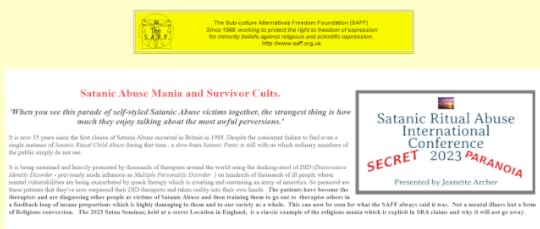 'SAFF’s review of Jeanette Archer's 2023 Satan Seminar. An incredible evaluation of the situation.Satanic Abuse Mania and Survivor Cults.