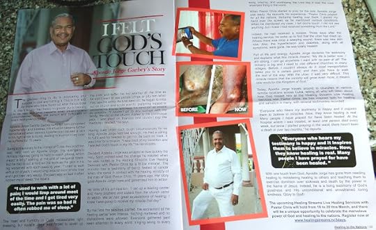 Their glitzy bible-based literature is full of spectacular testimonies of alleged 'before and after' healings, seeing patients miraculously cured of such medical conditions as severe ulcers, paralysis, osteoarthritis, and cancer, etc.