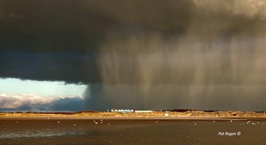 The dark ominous clouds moved over the hills towards Formby.