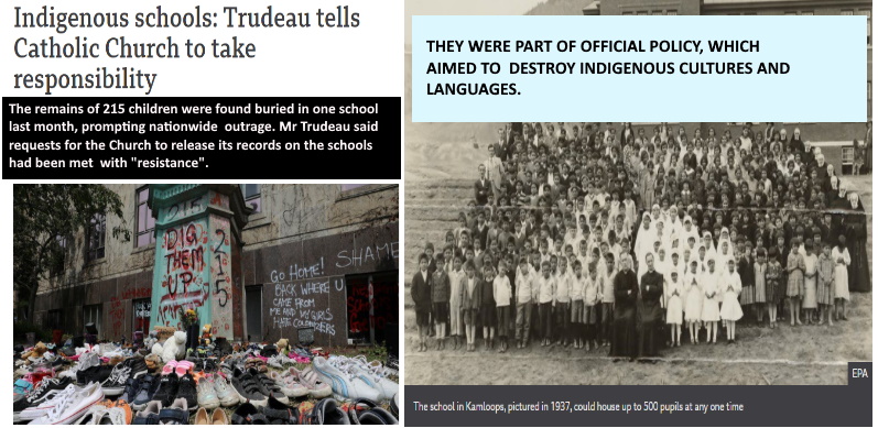 The remains of 215 children were found buried in one school last month, prompting nationwide outrage. Mr Trudeau said requests for the Church to release its records on the schools had been met with "resistance". Canadian Prime Minister Justin Trudeau has urged the Catholic Church to "take responsibility" for its role in indigenous residential schools. The government-run boarding schools were set up for the forced assimilation of indigenous children.
