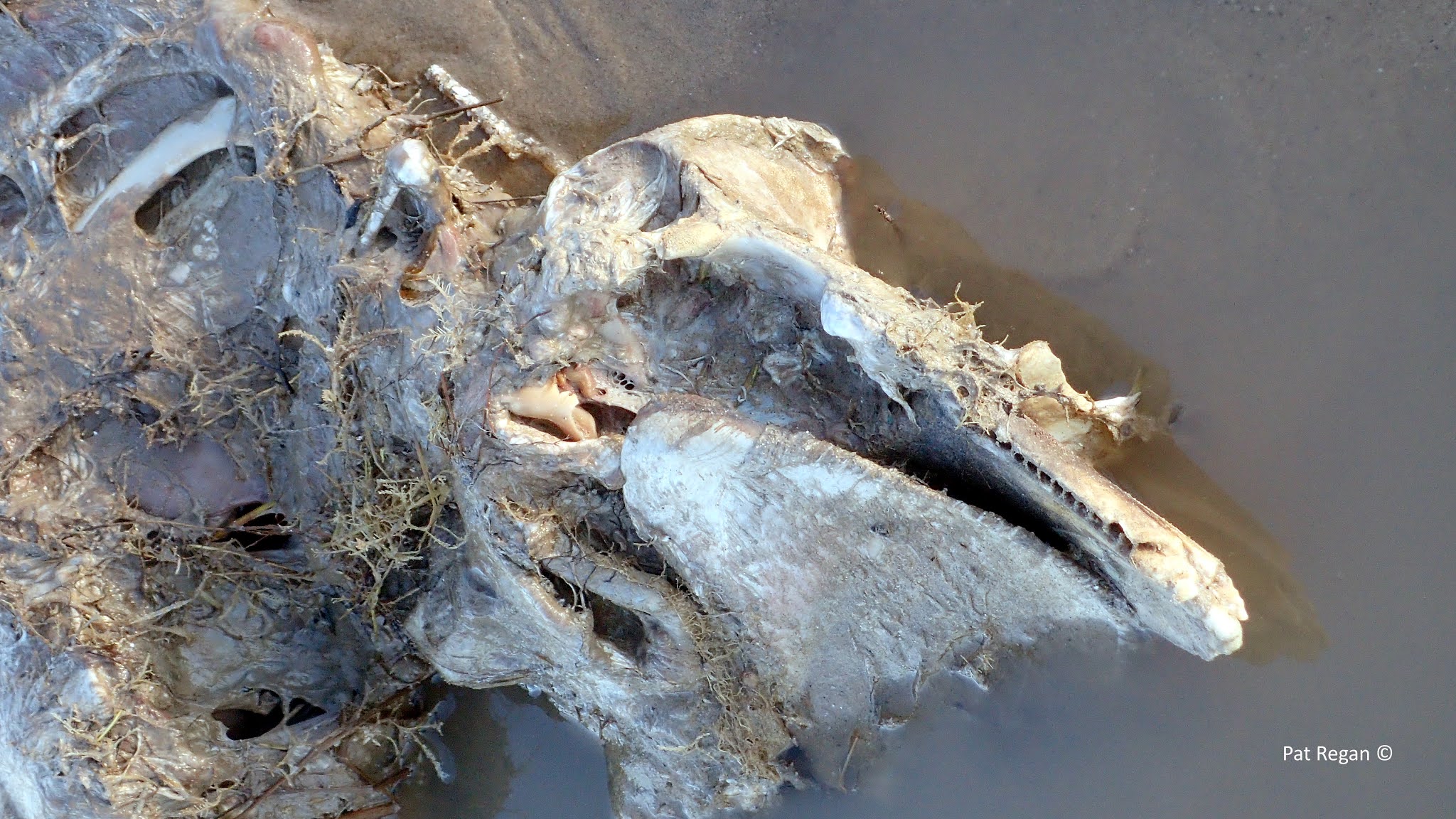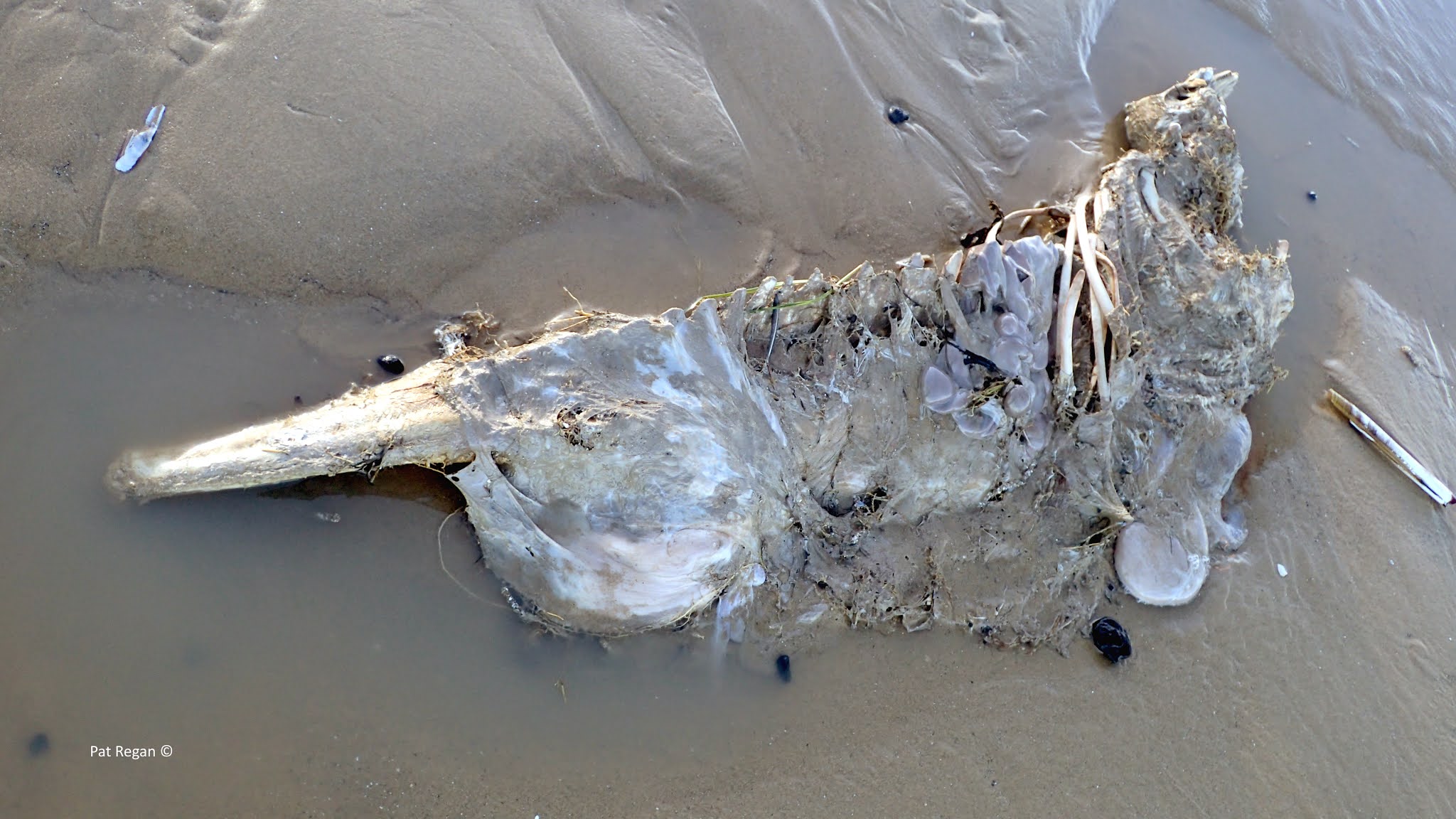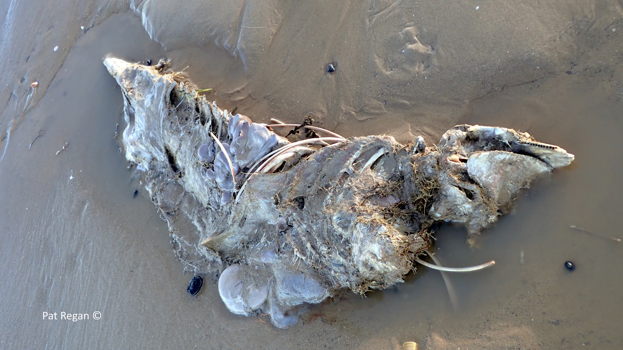The remains were about 4 to 5 feet in length. Initial suspicions are that this may be a young whale, dolphin or harbour porpoise corpse.