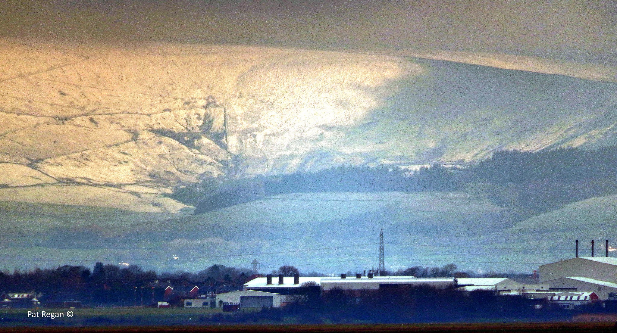Overnight snow attractively laced the higher fells above Preston last night. Photos taken from Marshside in Southport, via super zoom camera.