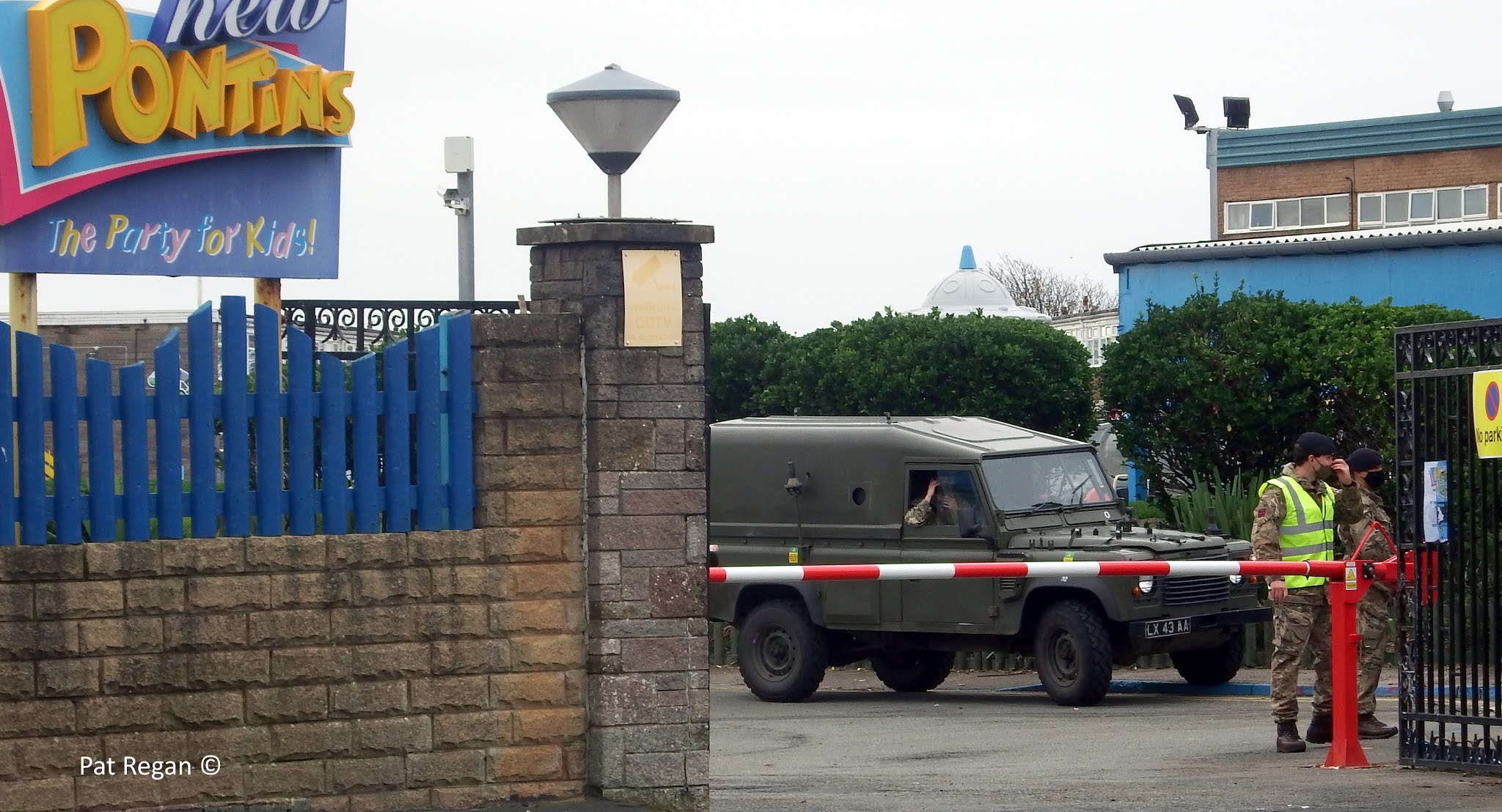 Substantial numbers of military personnel rolled into Pontins today ahead of Liverpool’s mass coronavirus testing programme.