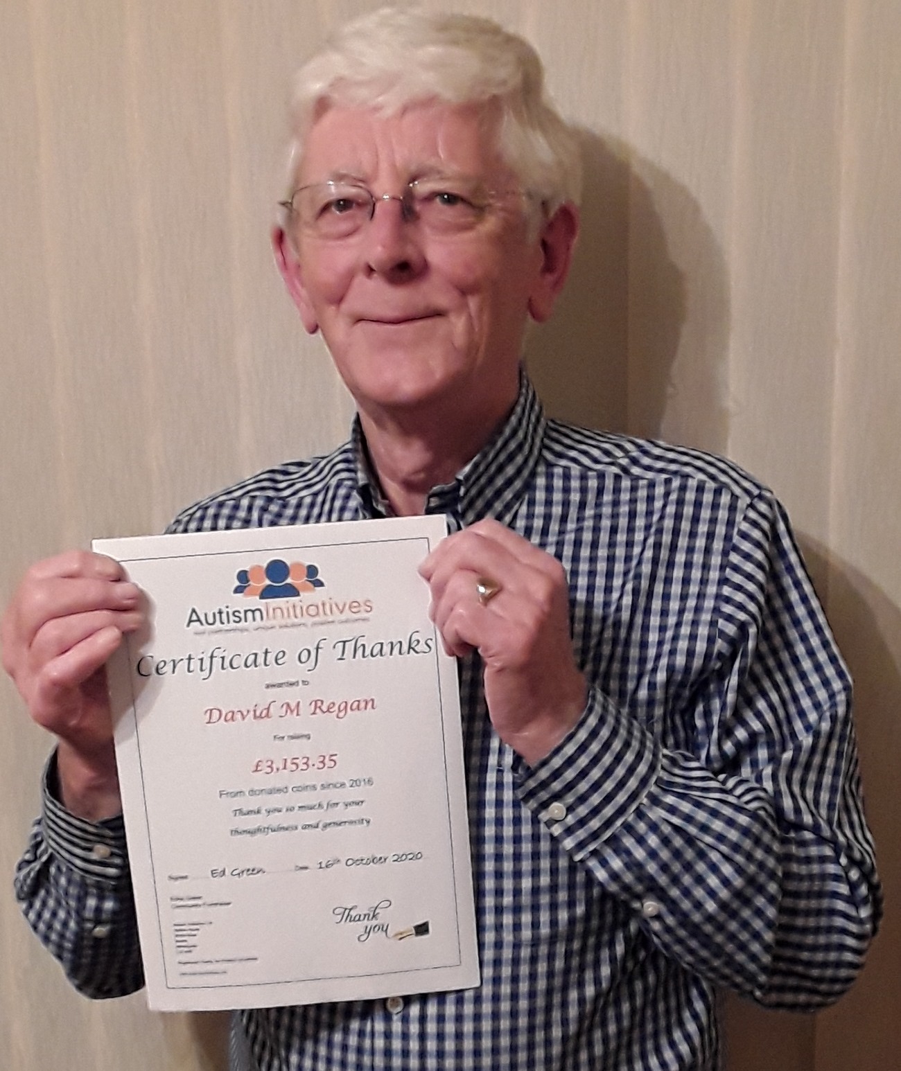 Southport coin expert, David Regan, has raised £3,153.35 for Autism Initiatives, Southport.