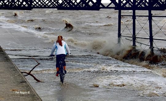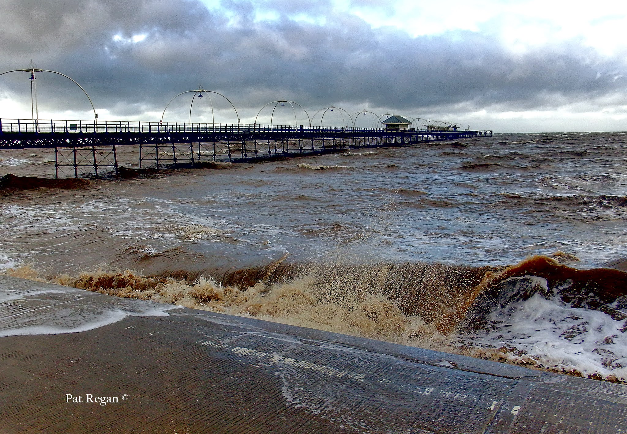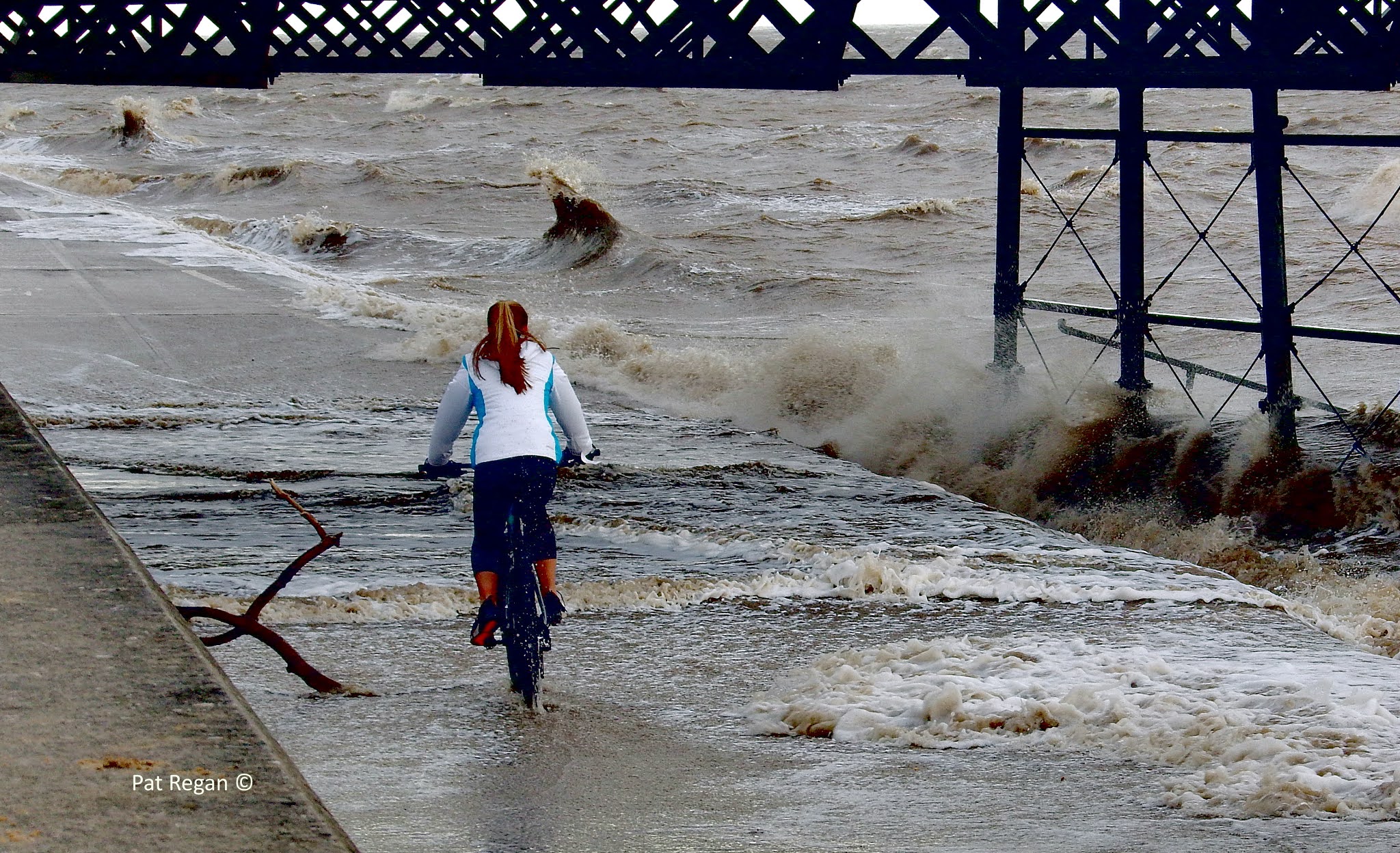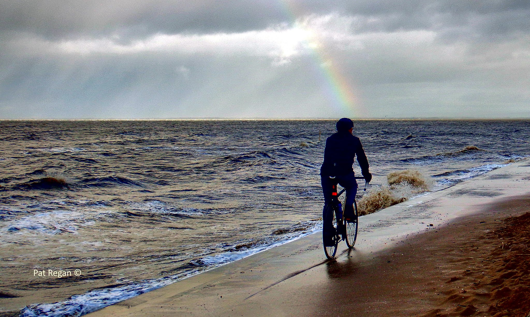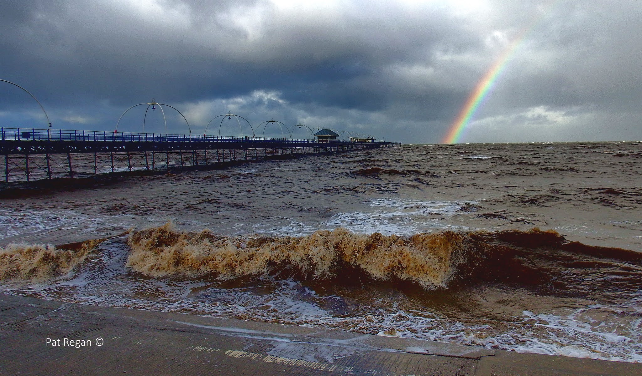 Sightseers and cyclists at the pier today were treated to an energetic high tide, along with vibrant rainbows over the Irish Sea.