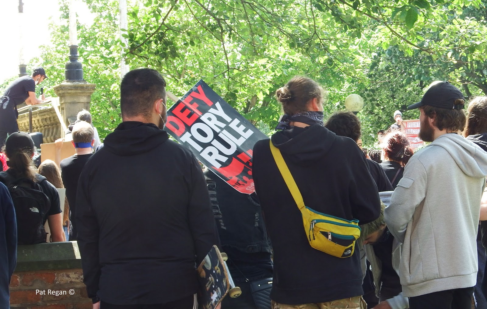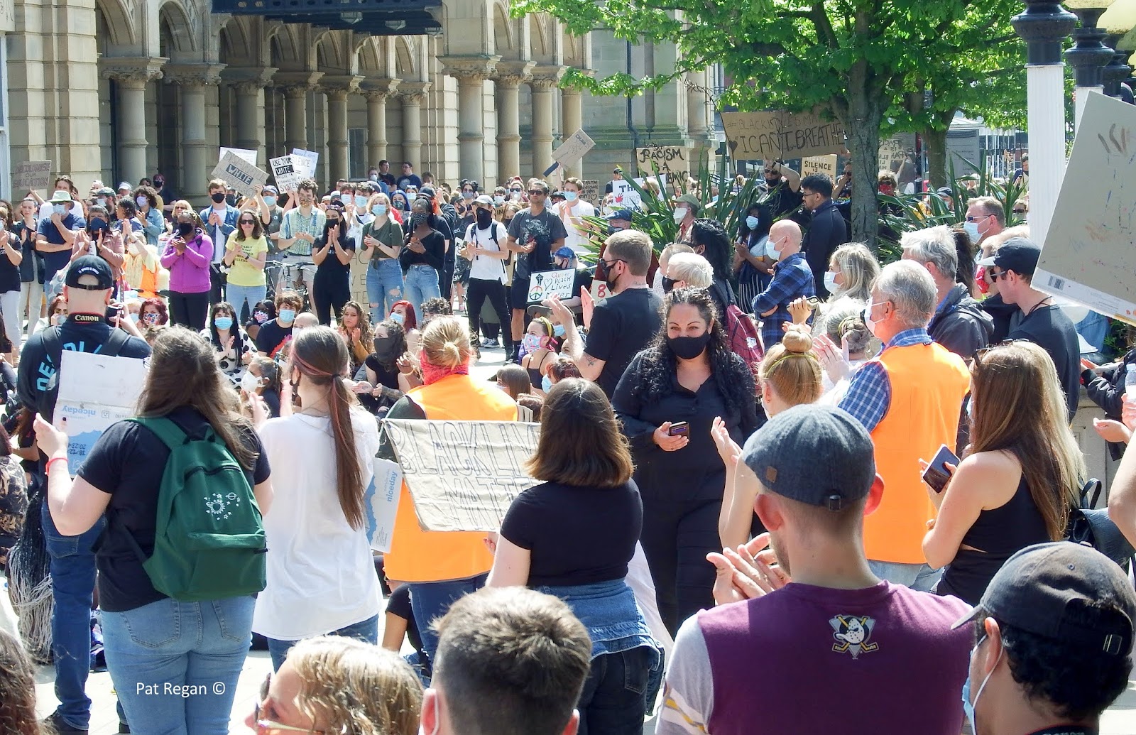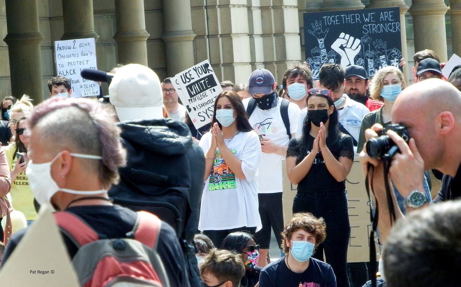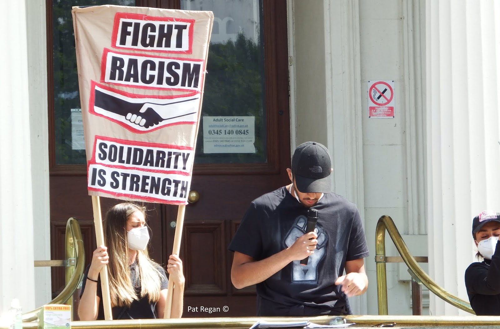 Black Lives Matter (BLM) demonstrators packed together in force outside Southport Town Hall this afternoon.