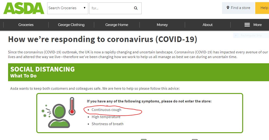ASDA coughing ban – at odds with latest government Covid-19 guidelines?