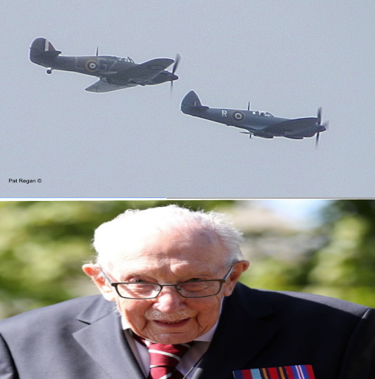 Captain Tom, who has captured the hearts of the Nation, observed a spitfire and hurricane flypast for his 100th birthday.