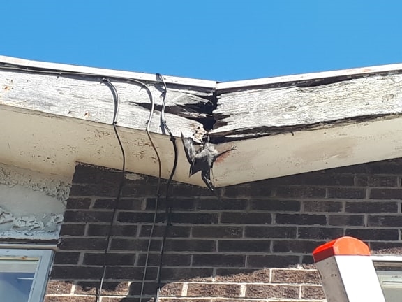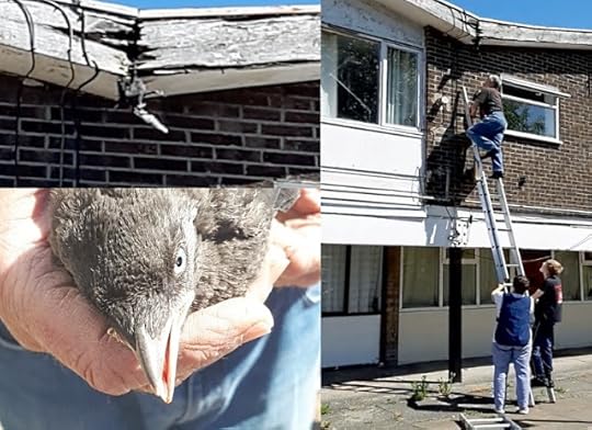 This morning caring staff members from Brookdale Daycare Centre in Sandbrook Way noticed a young jackdaw that was trapped and dangling on dilapidated woodwork in flats opposite the centre.