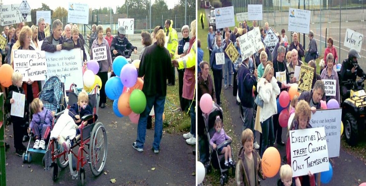 Fortunately, the weather held out and a successful protest march ensued. Mums, dads, grannies and granddads all came out with their children to show the NHS Trust that we have NOT gone away.
