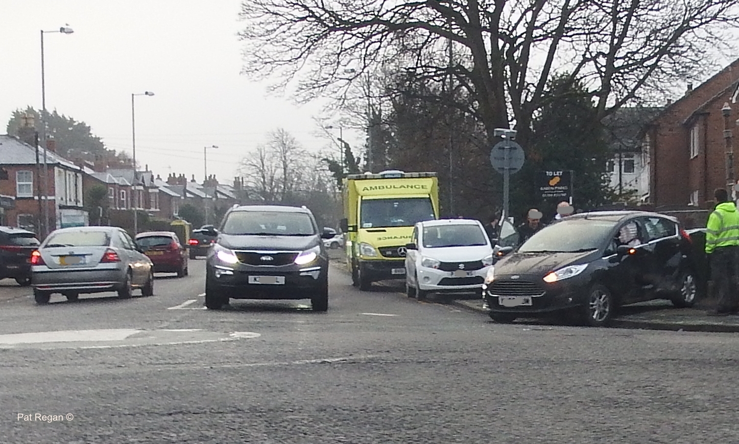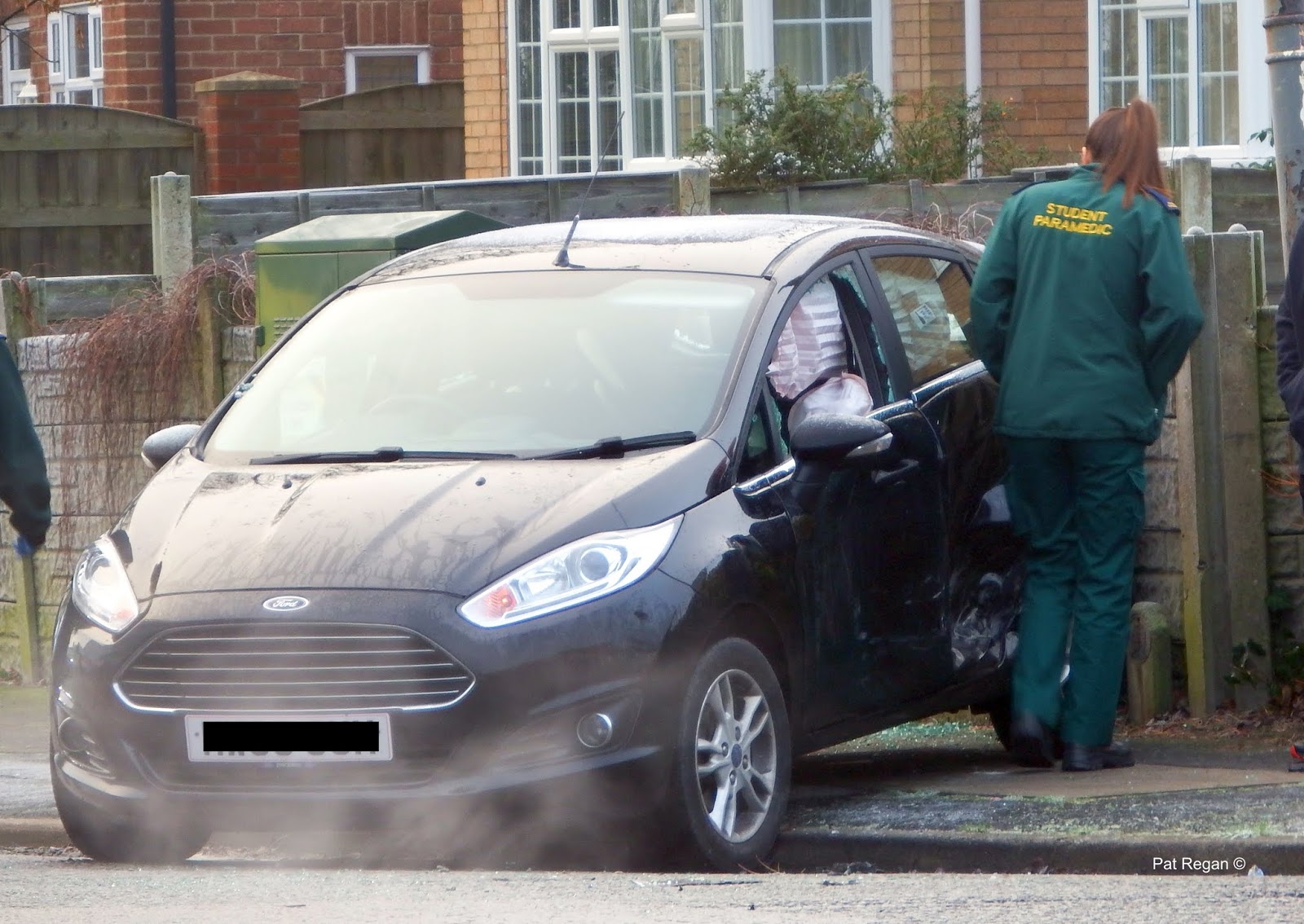 A black Ford car was involved in a road accident this morning in Formby. This happened shortly before 9.00 am at the roundabout of Church Road and Piercefield Road, near to the Grapes Hotel.