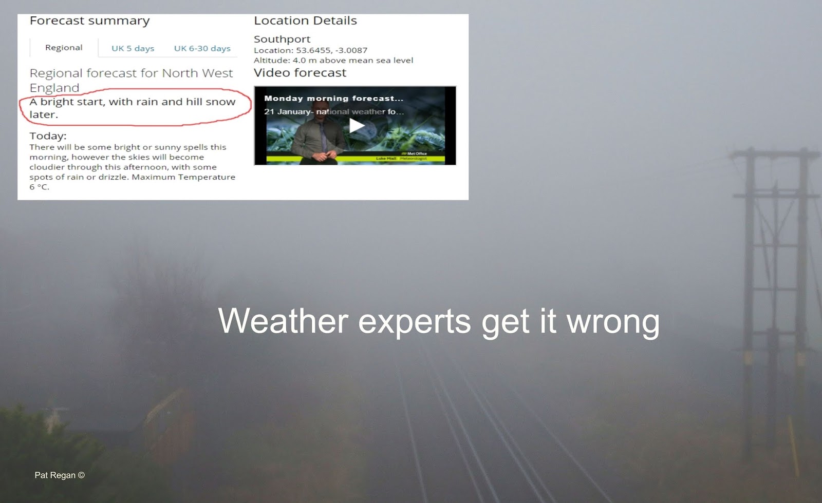 The Met Office gave no fog warning for Southport/Ainsdale this morning. However, this was the scene in Southport after the experts had predicted a 'bright start'. Sunrise occurred at 8.13 am and the images herein were all taken well after the day had started.