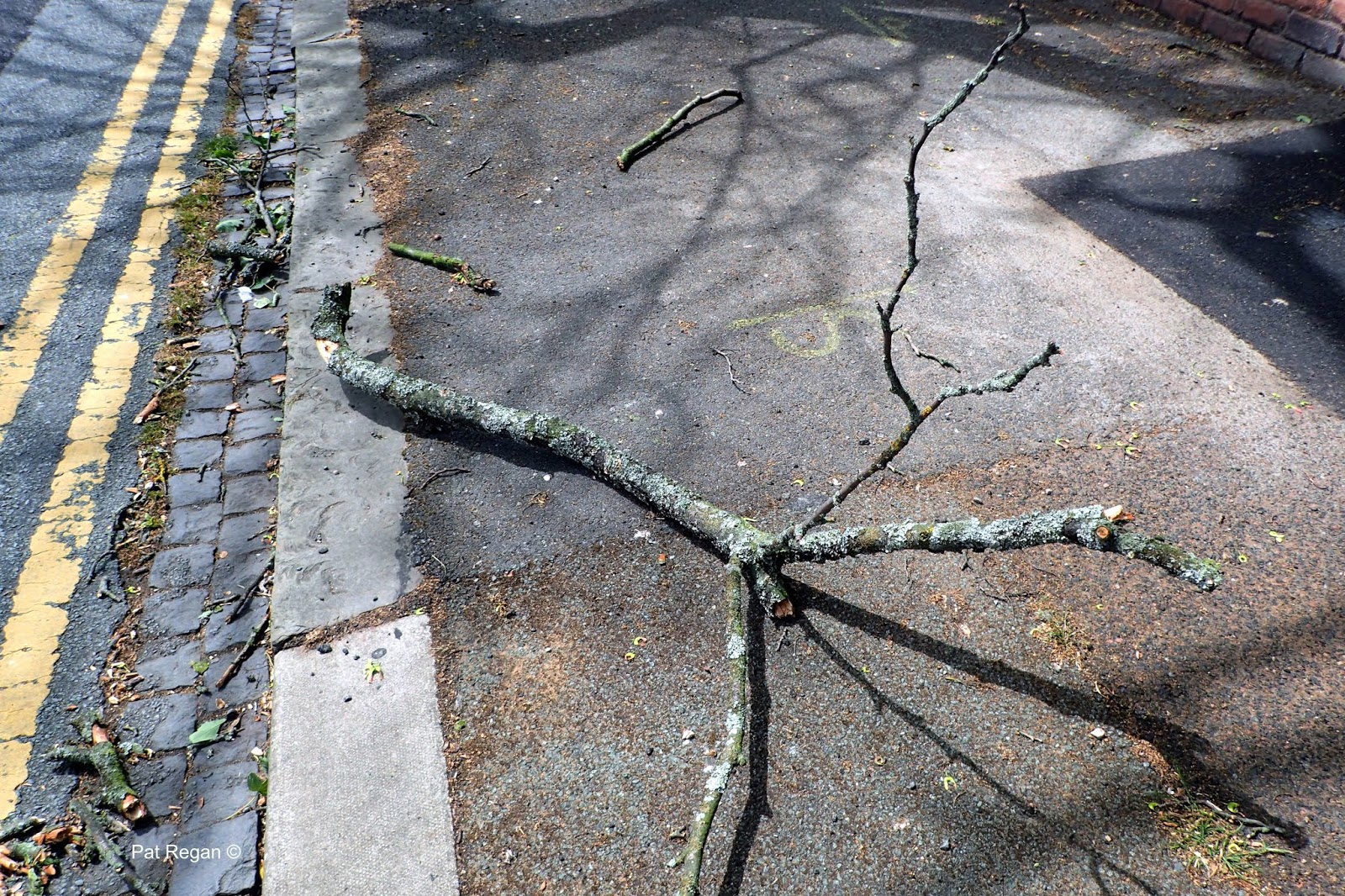 Following recent gusts of wind branches have started to fall onto the footpath and road from a large, long-dead, tree down Sandringham Road in Ainsdale.