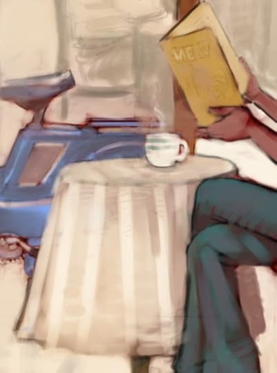 But back to restaurants and cafés. When one must make a choice, sometimes it’s best to study the menu (en français, “la carte”), and sometimes it’s better just to glance at it and look for something appealing. The same could be true for art, and for fiction…and some people judge a book by its cover.