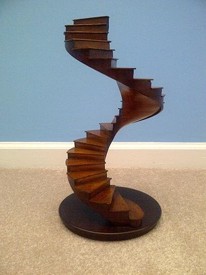 Which brings me to the French term for spiral staircase: escalier en colimaçon, one of my all-time favorite things. In the Parisian home that my husband and I visited this summer, a beautiful wood spiral staircase, slimmer than the miniature one in the above photo, stood in a corner of the living room, le salon. I’ve always wanted a spiral staircase in my house and lobbied to get it when we added on some rooms a few years ago. Alas, the combination of architecture and budget wouldn’t permit it, so I had to settle for a small, decorative one.