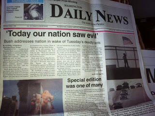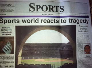 Here is the front of our newspaper on Sept. 12, 2001, along with the front of a special section and the front of the sports page that day.
