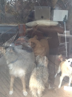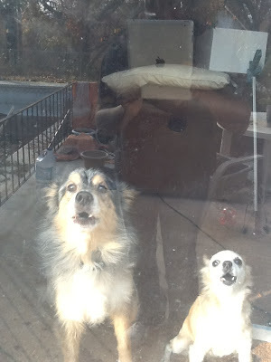 Behind the Glass DoorI stood at my sister's back door and took this picture. These two characters let me know that sneaking up on them was not allowed.