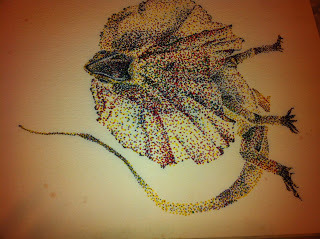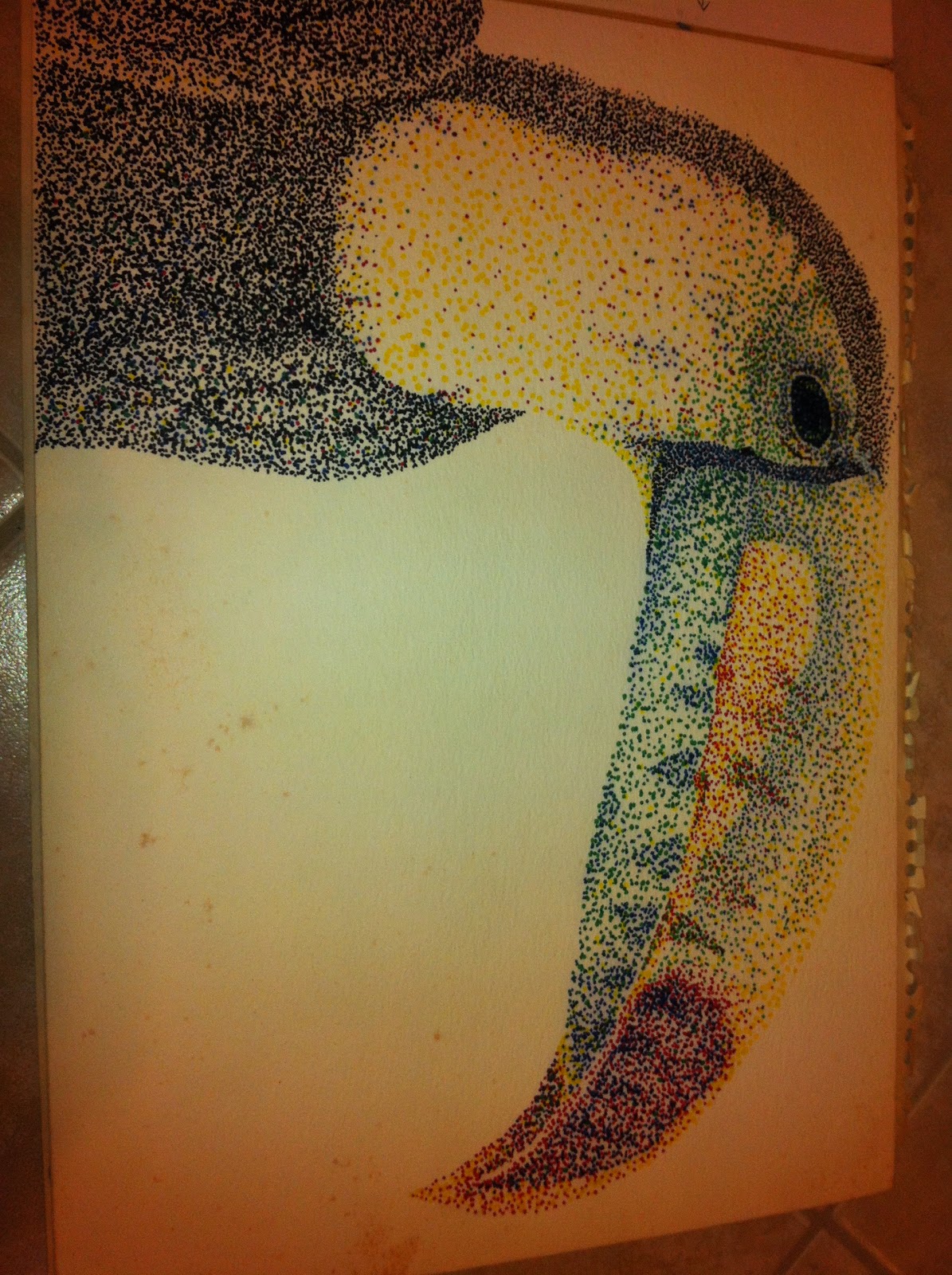 Here are a few pictures to share in the meantime. Color pencil on matt board.