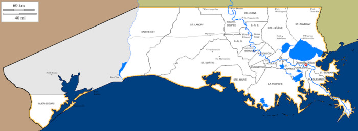 Trying to catch up on The Dead Skunk. That’s the timeline I’m doing for alternatehistory.com. I haven’t updated it in a while, what with one thing and another, but it’s still technically alive. This has meant, among other things, trying to research the history of Xinjiang. Never try to research the history of Xinjiang. That is all. And here’s a slightly distorted map of the mighty and glorious and totally-not-a-British-puppet Republic of Louisiana.