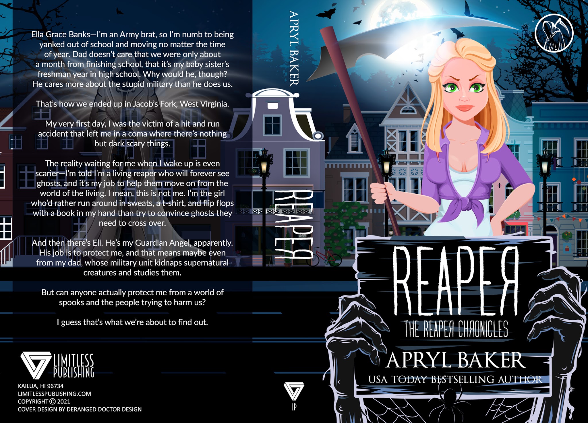 The reality waiting for me when I wake up is even scarier—I’m told I’m a living reaper who will forever see ghosts, and it’s my job to help them move on from the world of the living. I mean, this is not me. I’m the girl who’d rather run around in sweats, a t-shirt, and flip flops with a book in my hand than try to convince ghosts they need to cross over.