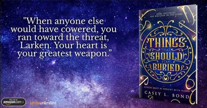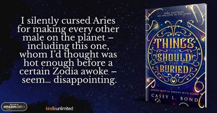Blurb: Some destinies are written in the stars. Others must be bought with blood…The Zodia are real. Clawing their way from a long-forgotten tomb, they emerge, ravenous to claim everyone born under their star signs. Plotting to resurrect kingdoms no human knew existed, they are driven by a hunger for vengeance against the one who buried them: Aries.Larken is a natural born sprinter, but even she can’t outrun the darkness closing in. A shelter-in-place order has been issued, causing widespread panic. Some brush the alarm off as a drill, until people begin to disappear... vanishing without a trace. Left with only one option, Larken’s brother does what he must to save her life... and calls forth Aries.Considered a traitor by his own kind, only Aries has the power to stand against the Zodia. But he can’t do it alone. Mystically bonded to Larken, the pair must band together for the fight to come if either hope to make it out alive. Neither anticipated the passion that would ignite between them. Yet, in a world suddenly thrust into chaos, it may be the key to their survival.The Zodia are out for blood with their attentions inexplicably focused on Larken. When long buried truths finally come to light, will their love be their salvation or their curse?“A mesmerizing and haunting twist on a familiar tale you don’t want to miss. “ - Cameo Renae, USA Today bestselling author of the Hidden Wings Series“Casey L. Bond reaches for the stars to bring us Things That Should Stay Buried. The Zodia are beautiful, dangerous and to die for.”- New York Times Bestselling Author Chanda Hahn