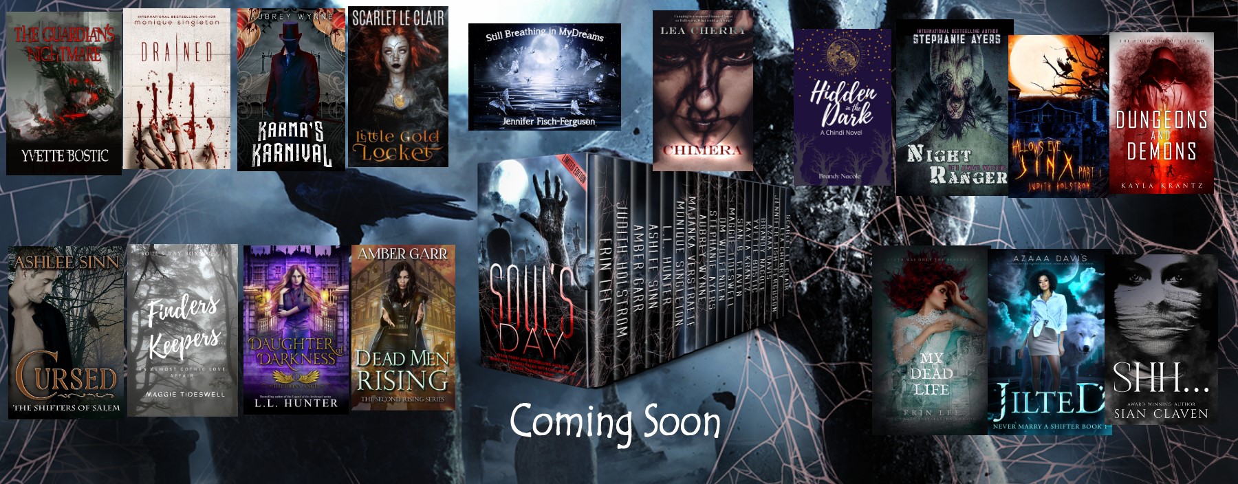 In the Soul’s Day Boxset, a mansion feeds on souls,A gargoyle captures them, and a demon dungeon master makes the calls,Campers gets picked off one by one,The Karnaval’s corn dogs are less than fun,Ghosts lurking around every bend,‘I do’ at the wedding is certainly the end.