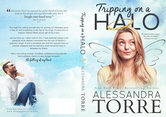 Tripping on a Haloby Alessandra TorreGenre: Romantic ComedyCover Designer: Perfect Pear Creative CoversRelease Date: December 7, 2018 SynopsisIt’s really hard to save a guy’s life when he keeps running from you.You might be asking yourself why I’m waving an inflatable penis in the air and screaming at the top of my lungs. If I took time to explain, Declan Moss would get hit by a bus.Let me back up. I didn’t ask for this. I was perfectly happy—and perfectly sane—before I was tasked with keeping Declan Moss alive. It was a thankless job until the moment that my panties dropped and his delicious smirk found his way in between my thighs.Hello, toe-curling ecstasy. Goodbye, professional boundaries. And suddenly, there’s a new danger to avoid: the falling of my heart. Goodreads
