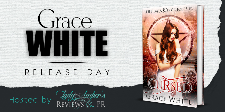 Title: Cursed (The Gaia Chronicles #1)Author: Grace WhiteGenre: Urban Fantasy romance (reverse harem)Publication Date: Mar. 5th, 2018Hosted by: Lady Amber’s PR