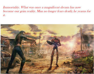 The world had turned to waste; immortality was never meant for man and it drove humanity to the edge of destruction. There had been plenty of stories about how the human race would end. Unlike the movies from Hollywood, there was no big bang like a sun exploding; there was no catastrophic moment where our world was flipped upside down like in a nuclear war or zombie virus outbreak. It was gradual, like a seeping virus that withered everything within its path until it ground us down into brittle, hollowed cores. It wasn’t out to destroy our bodies; it destroyed everything we once treasured. Hope, love, compassion, joy… even our mortality. It was all gone. And now it mocked us with a peace we could never achieve, death.