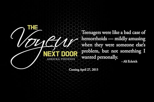 Title: The Voyeur Next DoorAuthor: Airicka Phoenix Genre: NA Contemporary Erotic *Warnings: Strong sexual content & language. (18+ Only)*Release Date: April 27, 2015Hosted by: Lady Amber's ToursBlurb:He lived next door. Alison Eckrich was an expert at being invisible. Having been raised by a mother who saw only flaws, she had learned long ago to watch and never participate. Until him. He was gorgeous from what little she could make out through his bathroom window and he awakened things inside her she had always been told was wrong. But she didn’t care. She was addicted. Gabriel Madoc was no stranger to the cold sting of betrayal. His broken heart had left him hard and bitter and that was how he liked it. Until her. She was a vision in the soft twilight. Everything about her called to him. It didn’t even matter he couldn’t see her face. He wanted her. The rules were simple: No names. No faces. No attachments. They both had what the other needed so long as they never broke the rules. But what will happen when the mystery is unveiled and they both come face to face with the truth and each other? Is what they shared in the cloak of darkness enough to keep them together, or will reality tear them apart? FB Release Party: https://www.facebook.com/events/808116989263187/