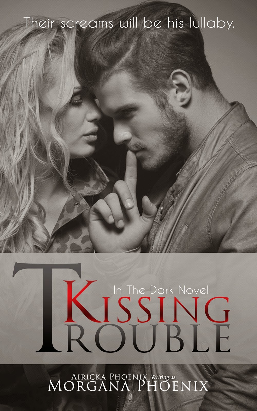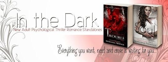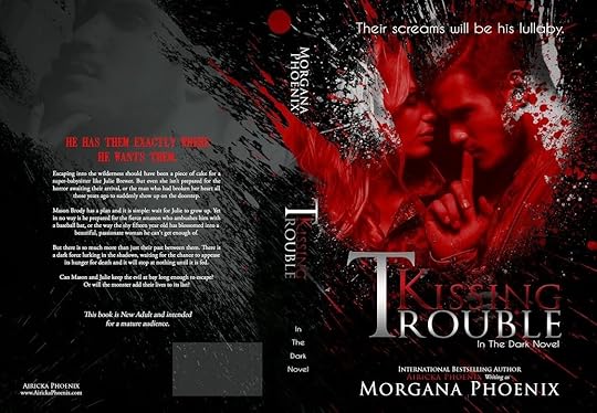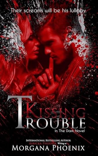 Title: Kissing Trouble (In The Dark Series, #2)Author: Morgana Phoenix Genre: Psychological Thriller Romance *Warning: Strong language and sexual content Hosted by: Lady Amber's ToursBlurb: Their screams will be his lullaby. Escaping into the wilderness should have been a piece of cake for a super-babysitter like Julie Brewer. But even she isn’t prepared for the horror awaiting their arrival, or the man who had broken her heart all those years ago to suddenly show up on the doorstep. Mason Brody has a plan and it is simple: wait for Julie to grow up. Yet in no way is he prepared for the fierce amazon who ambushes him with a baseball bat, or the way the shy fifteen year old has blossomed into a beautiful, passionate woman he can't get enough of. But there is so much more than just their past between them. There is a dark force lurking in the shadows, waiting for the chance to appease its hunger for death and it will stop at nothing until it is fed. Can Mason and Julie keep the evil at bay long enough to escape? Or will the monster add their lives to its list?FB Party: https://www.facebook.com/events/1456190584635764/