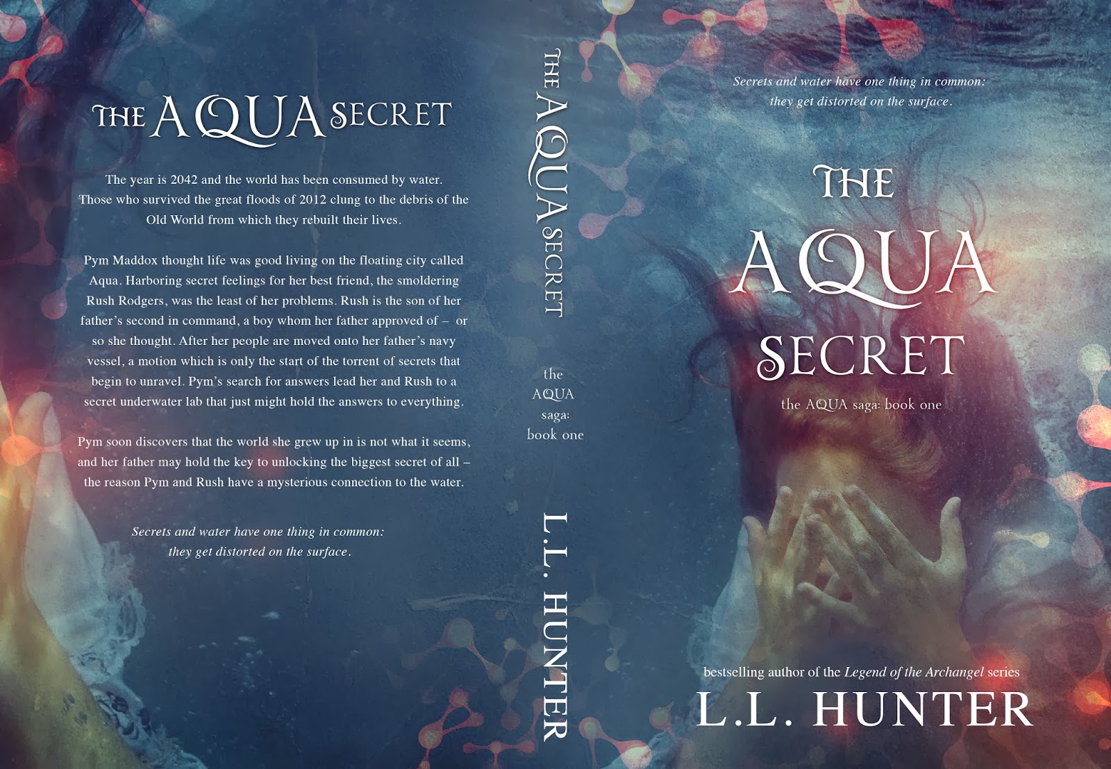 The year is 2042 and the world has been consumed by water.Those who survived the great floods of 2012 clung to the debris of the Old World from which they rebuilt their lives. Pym Maddox thought life was good living on the floating city called Aqua. Harboring secret feelings for her best friend, the smoldering Rush Rodgers, was the least of her problems. Rush is the son of her father’s second in command, a boy whom her father approved of – or so she thought. After her people are moved onto her father’s navy vessel, a motion which is only the start of the torrent of secrets that begin to unravel. Pym’s search for answers lead her and Rush to a secret underwater lab that just might hold the answers to everything.Pym soon discovers that the world she grew up in is not what it seems, and her father may hold the key to unlocking the biggest secret of all – the reason Pym and Rush have a mysterious connection to the water.
