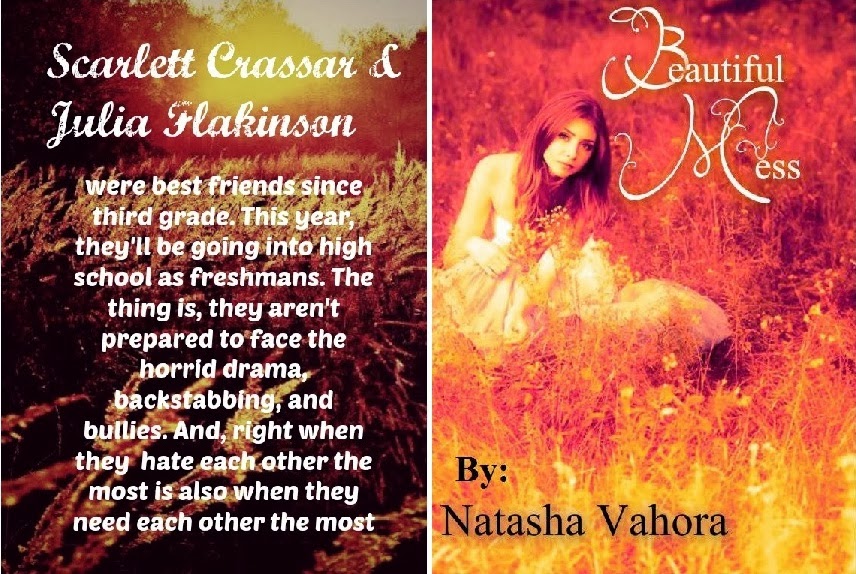 Sypnosis: Scarlett Crassar and Julia Flakinson were best friends since third grade. They've been through a lot together. Finally, they're about to go to high school. They're nervous, but excited. The thing is, they aren't ready for all the drama, backstabbing, facing the popular people, and the bullies. And let's not forget, the fighting between best friends. The times when Scarlett and Julia need each other the most, are also the times when they hate each other the most.Goodreads link: Add it to your TBR! https://www.goodreads.com/book/show/20766169-beautiful-messFacebook Page: https://www.facebook.com/pages/Natasha-Vahora-Author/429821093769503Amazon Author Page: http://www.amazon.com/Natasha-Vahora/e/B00BJPRDC8/ref=ntt_athr_dp_pel_1Blog: https://sweetandsassyreviewz.blogspot.com