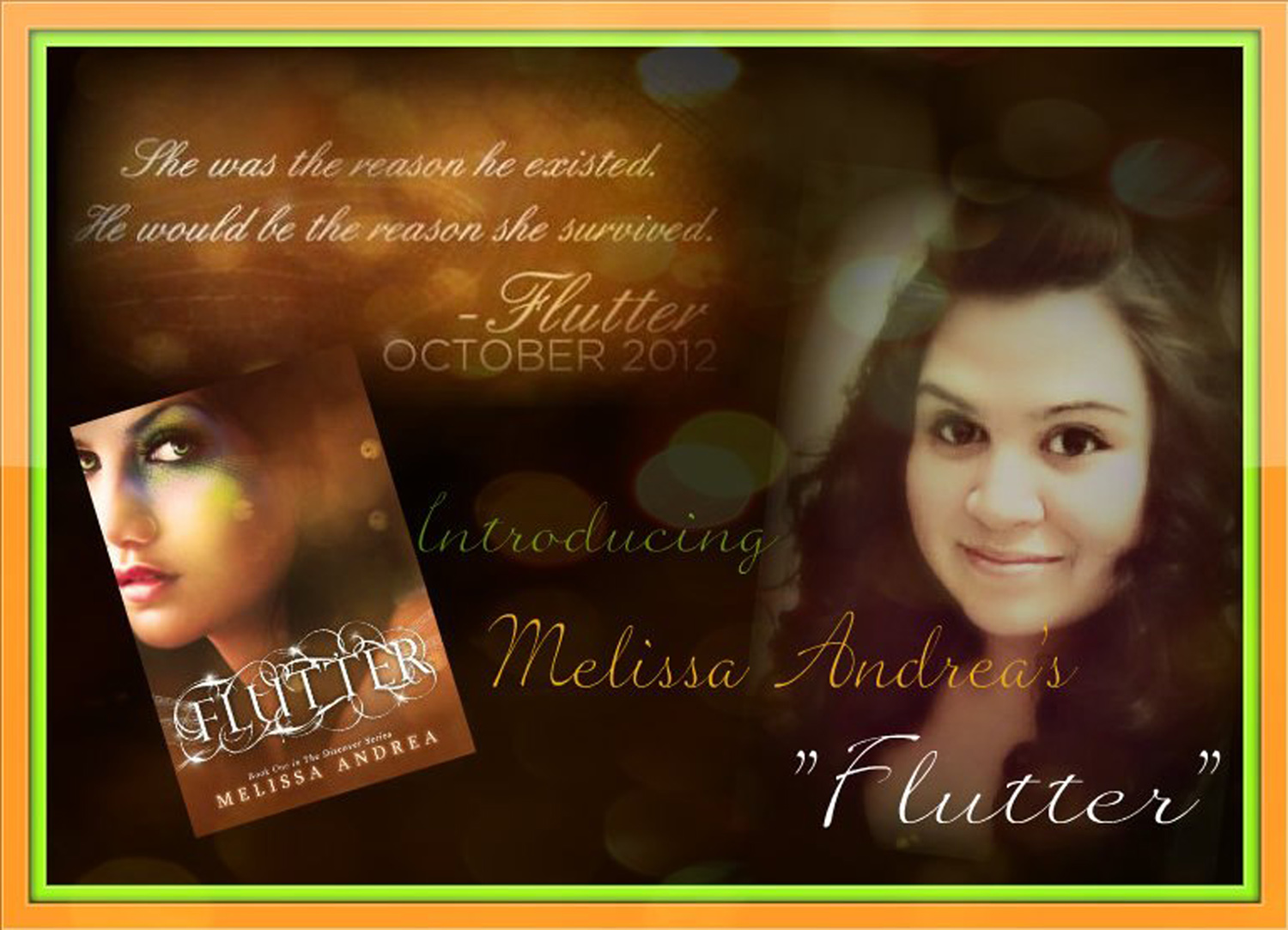 Melissa AndreaI find it hard to sum up my life in a paragraph, but I’ll try. Reading has always been a passion for me, and writing as instinctive as breathing. Every inhale is an idea; every exhale a creation. Flutter will be my debut release, and I couldn’t be more excited about it! The only thing I do better than writing you ask? Making beautiful girls. My daughter’s will always be my greatest accomplishment. I was born in Denver, Colorado –but I will always think of sunny Arizona as my home. I don’t have a big family, but I’m close with my sister, brother & my mom. My mom is my hero, my inspiration, and I couldn’t have asked for a more amazing person to be raised by.4 things you should know about me: I’m very girly, but I can get down and dirty with the best of them. I adore the color pink, I love things that sparkle (including vampires) and I like even numbers (hence 4 things about me, not 5)